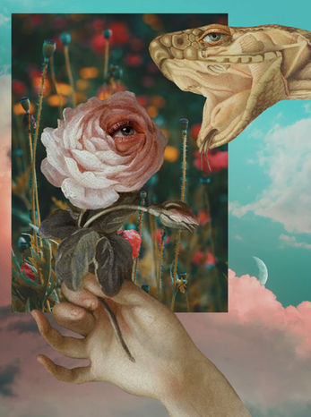 Whitney's collages reimagine the interplay between the natural and surreal, merging elements of fashion, nature, and mythology. Inspired by mythology, surrealism, and symbolism, she creates compositions that explore the boundaries between dreams and reality. Using vibrant colors and eclectic imagery, Whitney’s collages layer unexpected elements—such as celestial bodies, organic forms, and classic iconography—to form narratives that are both contemporary and timeless. Each piece serves as a visual portal, inviting viewers to dive into a world where traditional symbolism is reinterpreted with a modern, playful twist.